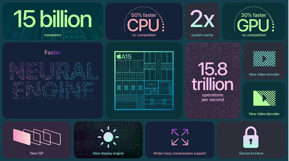 Chipset A15 Bionic tăng hiệu suất lên đến 50%