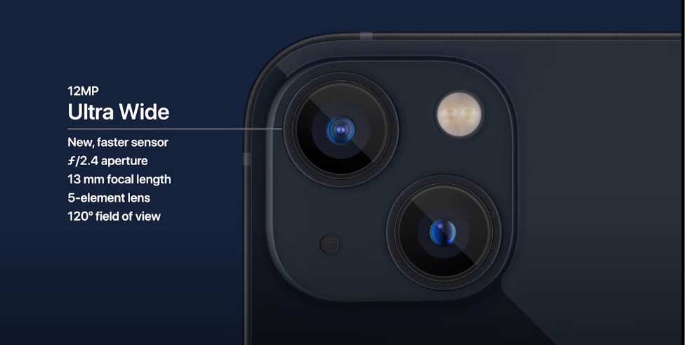 iPhone 13 được Apple trang bị 2 camera có độ phân giải 12MP với khẩu độ được mở rộng lên thành thành f/1.6 và cảm biến góc rộng khẩu độ f1.8 giúp bắt nét mọi thứ một cách chuẩn xác ngay cả trong môi trường thiếu sáng.