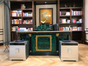Ngay khi mở két, người dùng sẽ được chiêm ngưỡng hệ thống nội thất bọc da PU chắc chắn. Phần da này được hoàn thiện vô cùng tỉ mỉ và chắc chắn, đi cùng với viền kim loại sáng bóng, cao cấp.