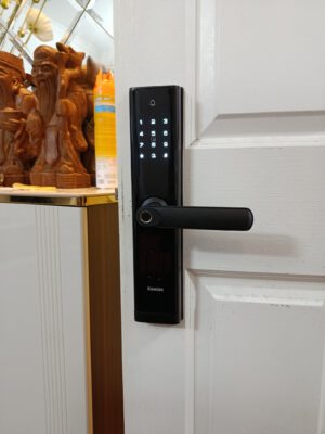 Khóa có thiết kế hiện đại, phù hợp lắp tại chung cư cao cấp, văn phòng làm việc, cửa phòng giám đốc hoặc phòng kỹ thuật yêu cầu kiểm soát truy cập thông minh.